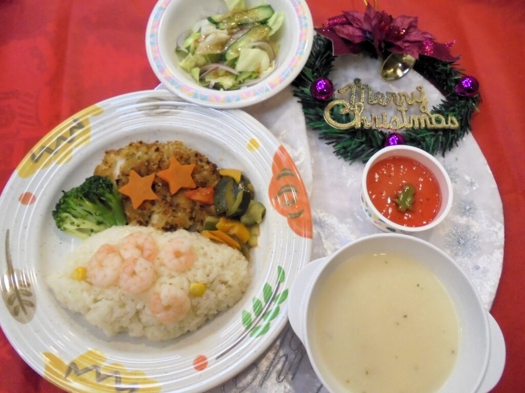 投稿日: 2025年12月30日 投稿者: sensekiblog[2025栄養課]12月行事食のご案内 2025年12月22日 昼食 「冬至」 <お品書き> ・冬至かぼちゃ 2025年12月24日 夕食 「クリスマス」 <お品書き> ・エビピラフ ・若鳥の香草パン粉焼き ・フレッシュサラダ ・ポタージュスープ ・クリスマスカップデザート