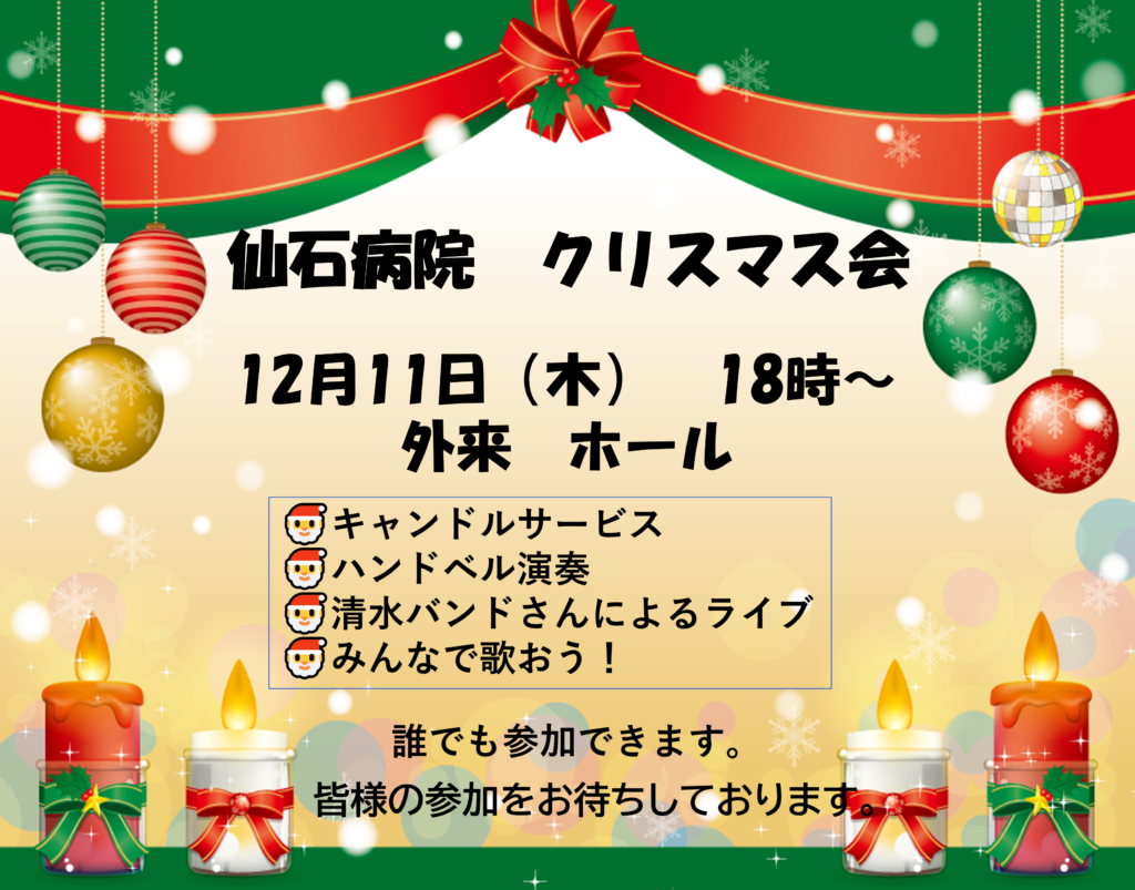 仙石病院 クリスマス会コンサートを開催します。
